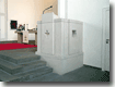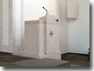 In 2002 - 2003 the Evangelical Church of Waldbröl, Germany, just east of Köln (Cologne), undertook a complete redesign and construction of the interior of its mother church. They commissioned me to design and carve the pulpit and the large cross three meters high to be hung from the back wall of the main sanctuary (we had to scale it down a little bit to transport it through the churches largest entry way). They also commissioned me to carve a special sculpture from my Nimbus series called "Triad" because for them it has the obvious relationship to the Trinity within the Christian beliefs. I chose a French calk stone named Massanges for all three aspects of the commission for its similarity in color and feeling to the stone used to construct the original altar which was retained in the reconstruction and which I believe is no longer quarried.